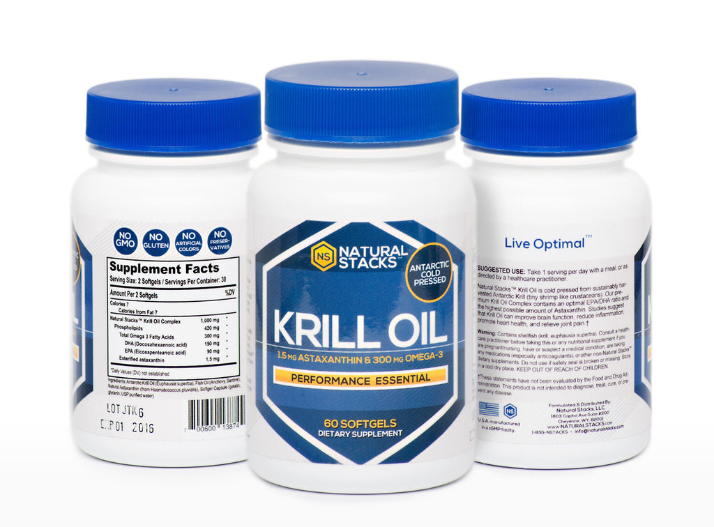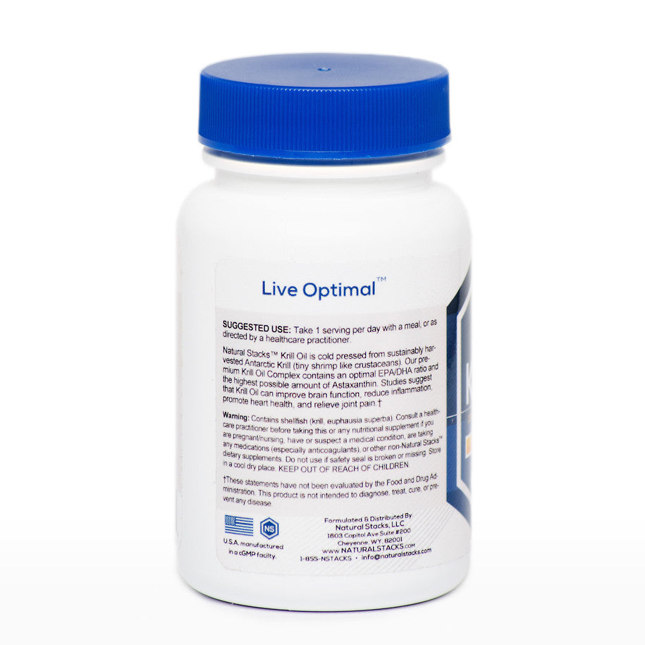 Natural Stacks™ Krill Oil is cold pressed from sustainably harvested Antarctic Krill (tiny shrimp-like crustaceans). Studies suggest that Krill Oil can reduce inflammation, improve brain function, relieve joint pain, and promote heart health.