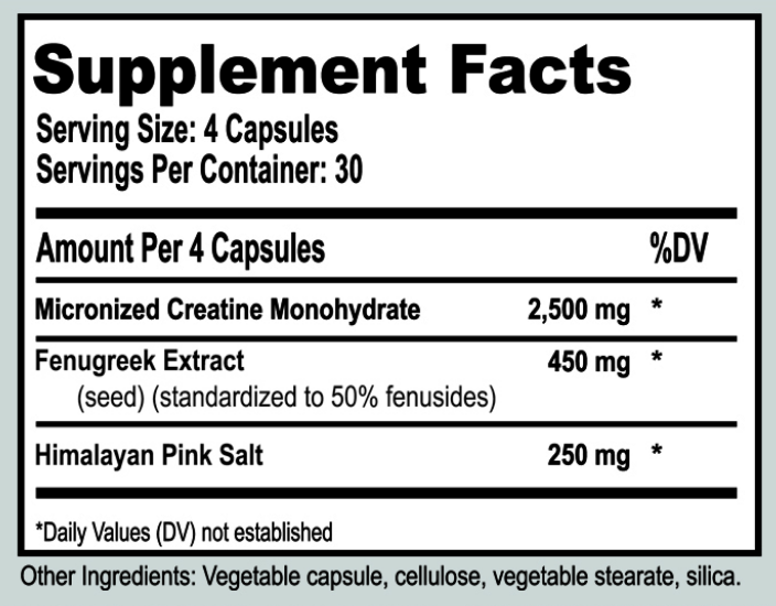 BioCreatine provides the proven mental and physical benefits of creatine monohydrate plus the unique advantages of Himalayan Pink Salt and Fenugreek Extract.